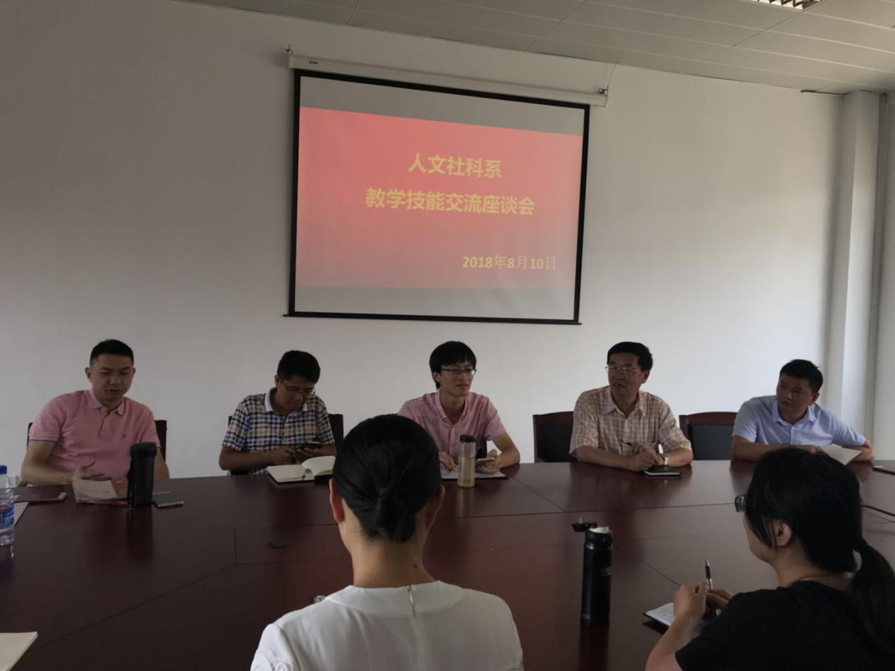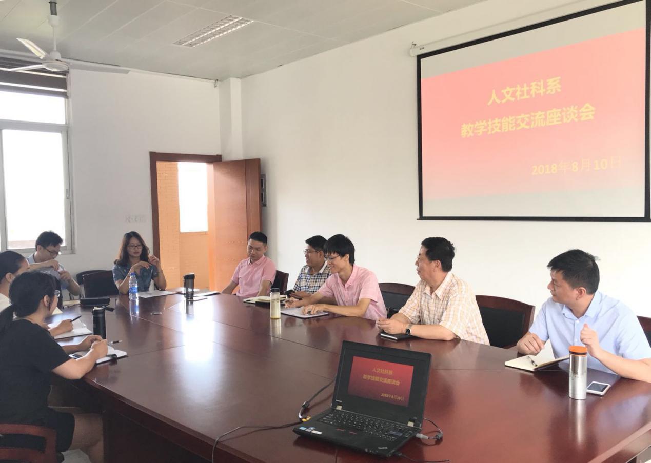 8月10日,为提升本科办学水平,提高教师们的教学技能,人文社科系响应学校及学院的号召,在文科楼501会议室召集所有教师开展了教学技能座谈会。童正容老师主持会议,并对当前教师上课存在的主要问题作了总结:第一,教师备课不认真;第二,课堂气氛差;第三,员工对课程知识的吸收差。之后介绍了分享教学经验的艾良友、谢履羽、李双荣三位老师,由此拉开会议帷幕。