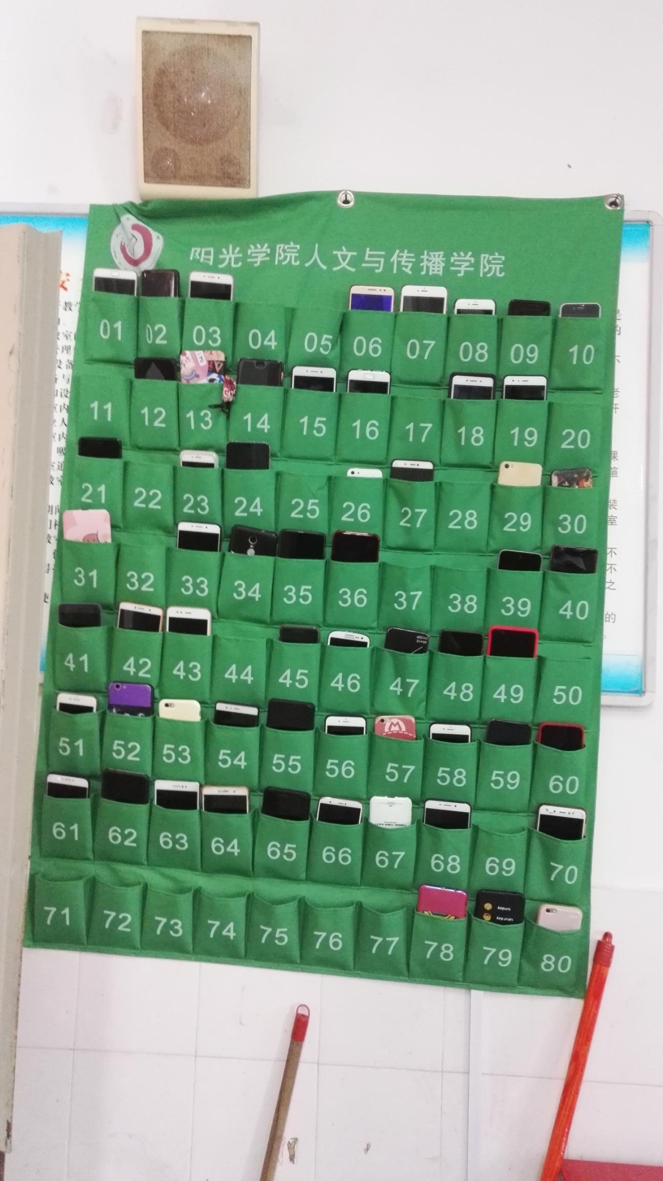 新学期伊始,在学校的动员部署下,人文与传播学院各个班级教室都装上了一个新奇的玩意—“手机收纳袋”。在员工会的统一采购之下,所有班级都如期装上了收纳袋。当下社会,随着智能手机的日益普及,越来越多的人开始被手机所俘虏成为了“低头族”,人们在日常工作学习中甚至在与亲朋好友的聚会时,都难以自持地低下头沉入那虚拟的网络世界中。或游戏,或聊天。