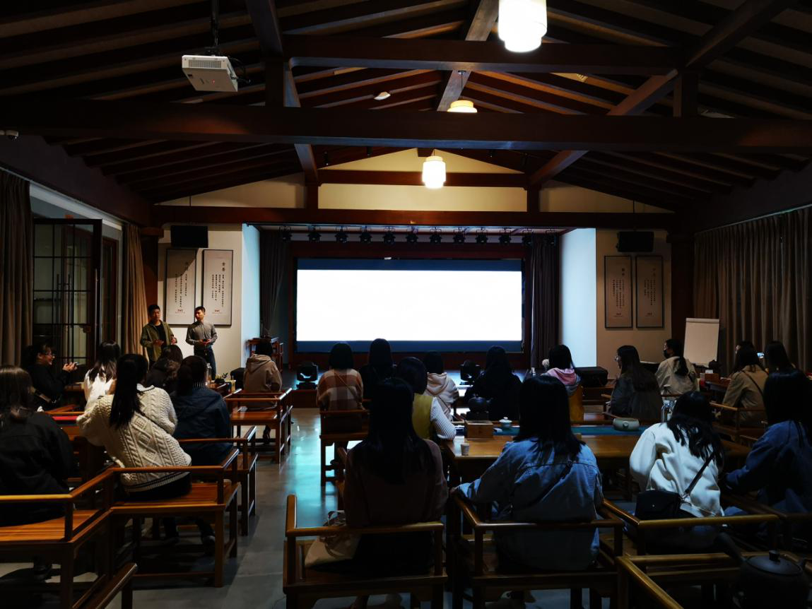 参观完毕,企业副总经理王勇先生和人资部经理李菡婷女士邀请同学们到会议室开展了交流探讨会。企业代表人简要介绍了“闽茶文化馆”的整体布局架构和企业战略规划之间的必要联系,随后也阐明了此馆作为企业对外宣传茶文化窗口的重要性,其初衷不仅仅是为了提高企业知名度,而是希望基于闽茶,打造出属于福建的文化名片。会上,公司员工不仅就文化层面与企业进行探讨,更是从产业运营的角度提出自身的疑惑,王勇先生以丰富的管理经验予以同学们见解。双方还就如何开展文化宣传、策划活动、打造成功的艺术学堂模式等进行多方面交流和沟通。座谈会在最后愉悦的合影留念中告一段落。