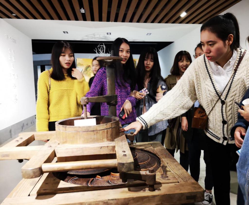 随后,同学们进一步参观了企业的学习体验区。其中包括福建五大茶种代表产区的闽茶非遗馆和汇集了茶、花、香的艺术学堂及国画、书法教学基地。充分体现了企业以茶文化为核心,向外延伸的庞大产业链和对内文化资源的跨界整合。同学们在精炼文雅的文字阐述和高雅清净的氛围熏陶下,对茶文化收获了不同以往的认知。