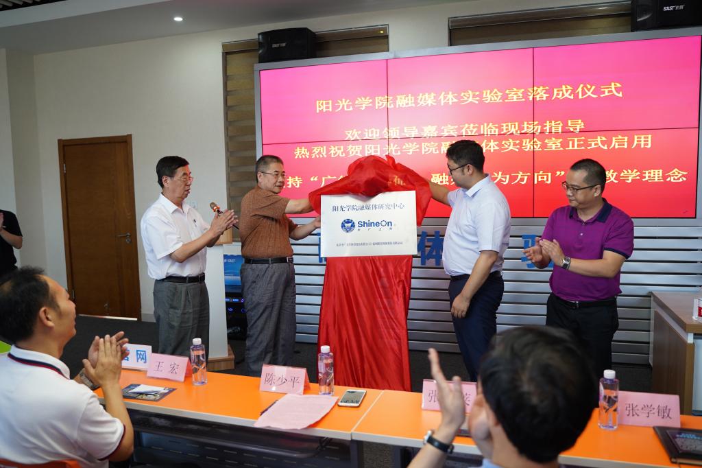 融媒体中心实验室的校企结合模式,是学院与北京中广上洋科技有限公司、福州朗星科技有限公司联合建立,具备了传统媒体和新媒体的采集编辑、演播室直播、影视表演、影视服装道具制作等实训功能;目前依托最新的媒介融合技术,利用“阳光云平台”大数据的支持,实现传统媒体和新媒体融合的目的。这一实验室的建成,使得员工们对未来学习新媒体充满了信心与期待。