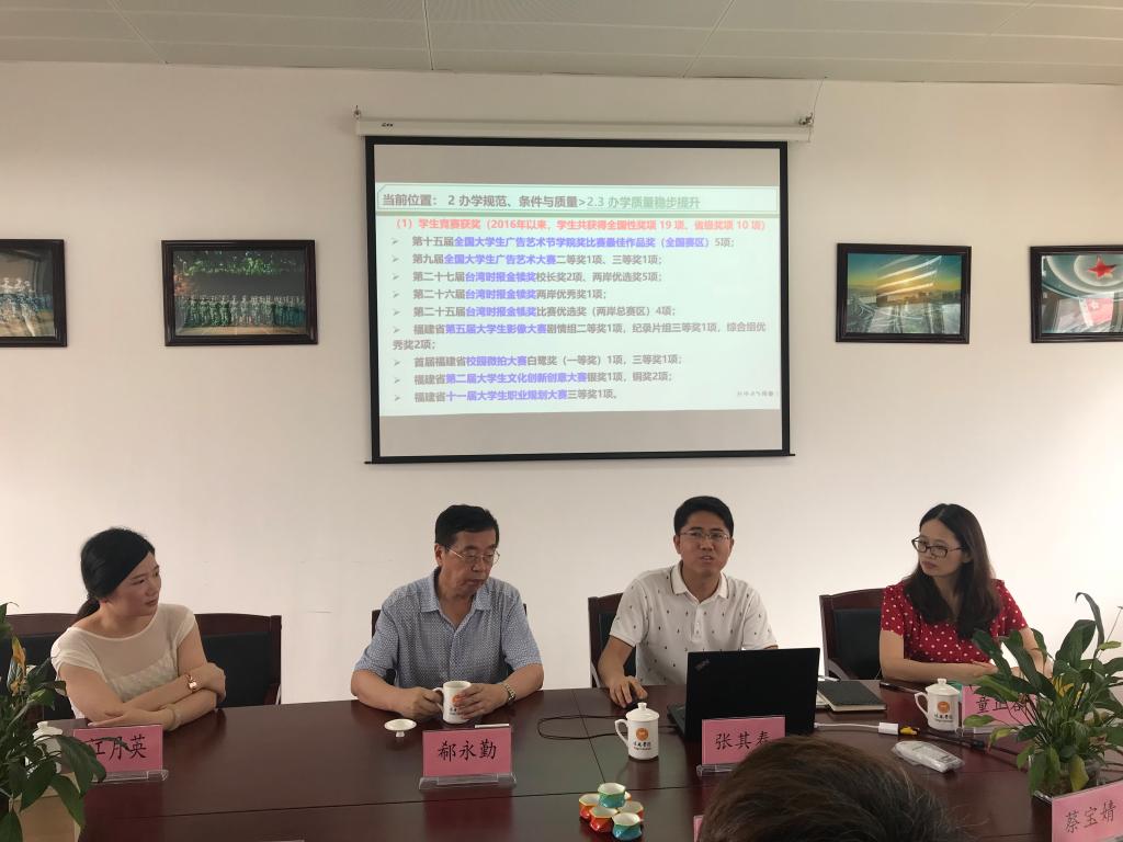 会上,郗院长首先对各位老师的到来表示热烈欢迎。随后公司主管教学的张副经理对整个人文与传播学院的发展历程、团队队伍、团队建设、人才培养等内容向来宾作了详细介绍,并分享了公司在本科专业建设、课程建设、实践教学、创新创业教育等方面的具体做法和经验。文化产业管理专业江老师、行政管理专业童老师还分别就文产、行管专业具体建设内容进行了介绍。