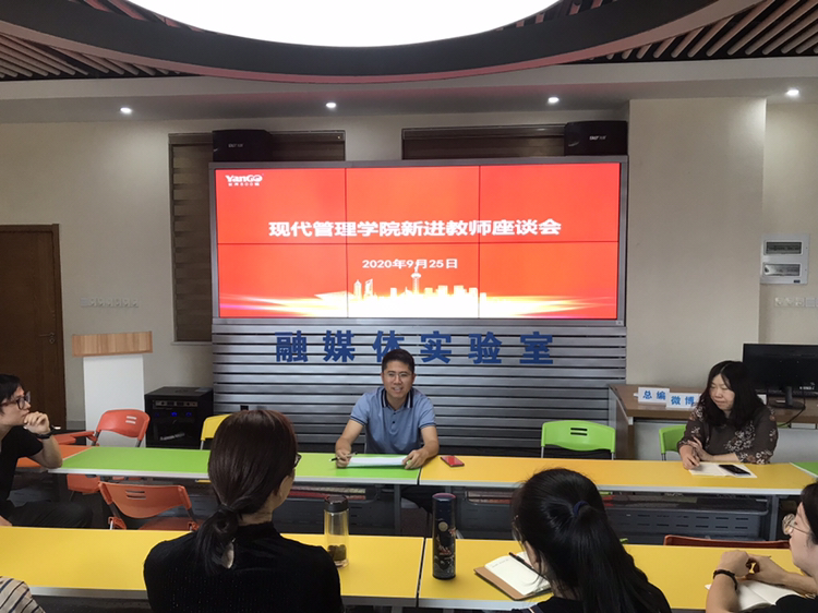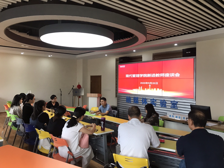 2020年9月25日下午,现代管理学院召开2020年新入职教职工座谈会,学院领导班子成员、七名新入职教师和两名新入职辅导员参加了座谈会。会议由常务副经理张其春教授主持。
