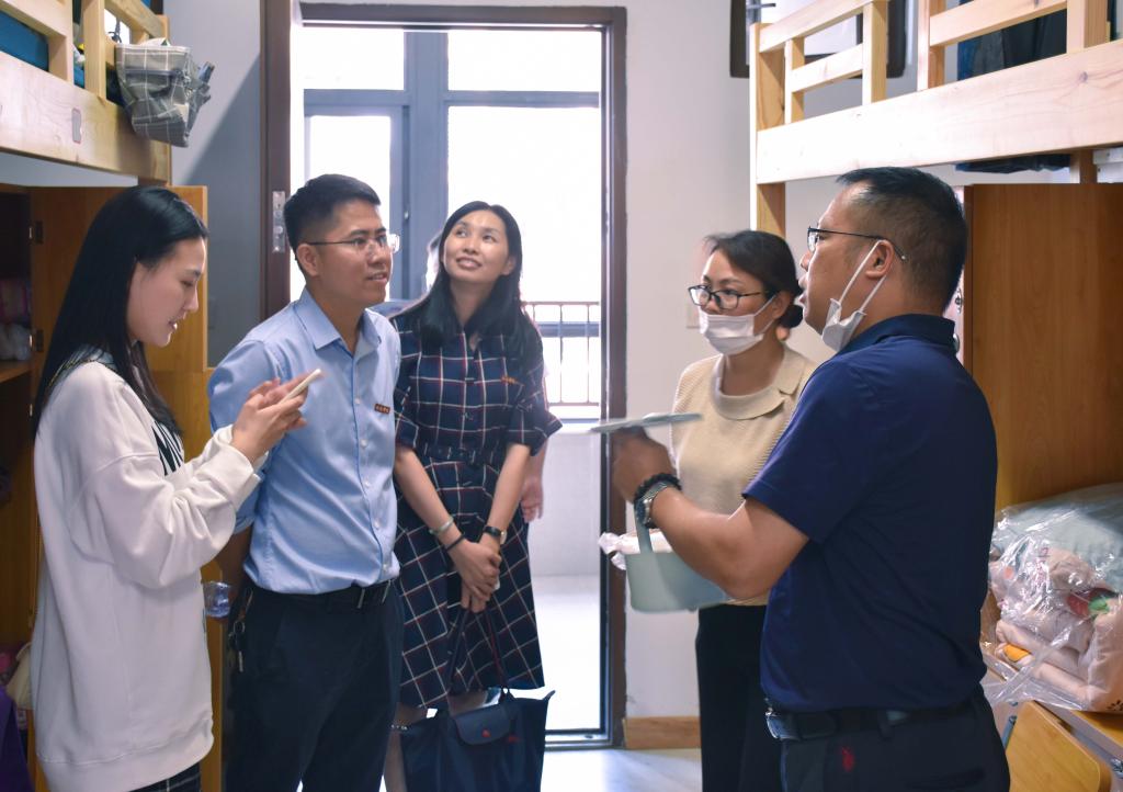 新生报到期间,现代管理学院经理张其春教授、党总支张斌书记、经理助理谢苗苗、徐丹老师、系主任、副主任、专业负责人等都亲临现场,查看新生报到情况,并走访新生宿舍。领导和老师们仔细检查了宿舍的安全情况,并关注宿舍各个细节问题。同时,领导和老师们认真询问了新生及其家长对宿舍的意见和建议,以便营造更加良好的住宿环境。
