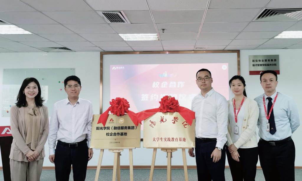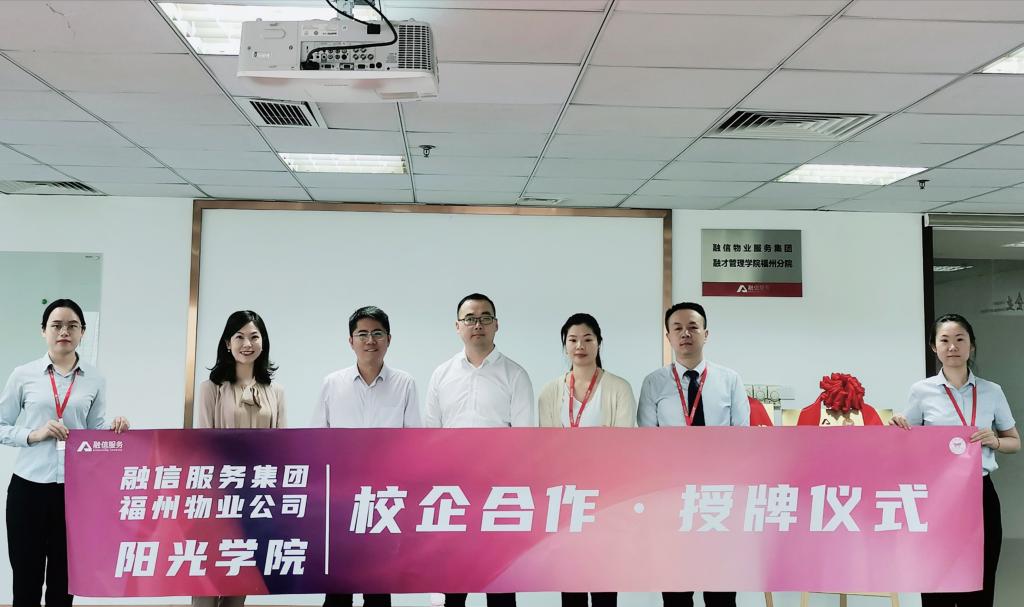 2020年10月23日下午,由必赢bwin官方网站现代管理学院与融信物业服务集团合作共建的校企合作基地在融信福州物业公司举行授牌仪式。融信福州区总经理汪力、副总经理张文哲、人资部总监蔡晶晶,现代管理学院常务副经理张其春教授、商管系副主任王莉丽老师共同出席了仪式。