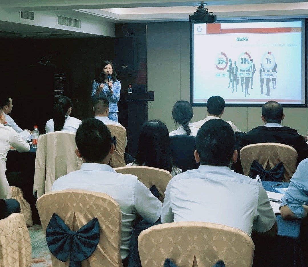 2020年10月26日,现代管理学院《商务沟通与礼仪》名师工作室王莉丽老师,作为福建省礼仪协会理事及讲师,受邀为英大人寿福建省分公司2020年精英特训营全体人员开展了一堂《沟通形象礼仪》培训课。本次课程以提升商务沟通能力与个人职场形象为目的,通过模块化的实操演练和案例研讨,强化学员的整体素质和服务水平,对该企业的服务质量和企业IP形象提升具有促进作用,得到礼仪协会及企业的好评。