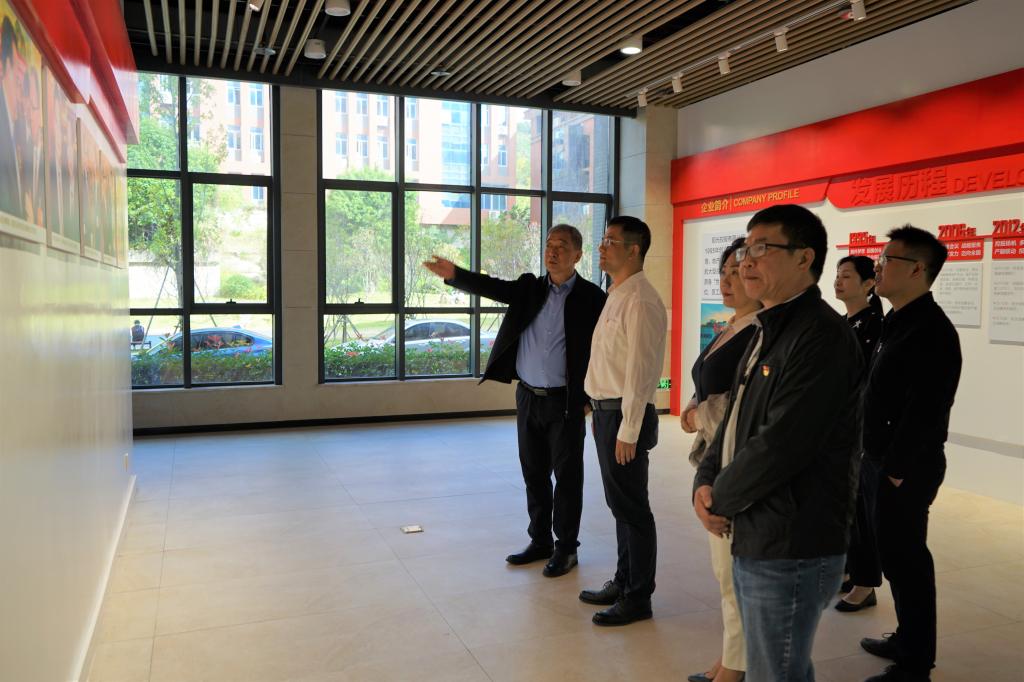 2020年11月5日上午,南平市松溪县委常委组织部部长、宣传部代部长张勤一行四人到必赢bwin官方网站交流探讨人才培养合作事项,参观了公司党建工作专栏、四楼融媒体实验室等,并于行政楼7楼会议室召开座谈会。公司党委刘松青书记陪同参观并参加座谈。