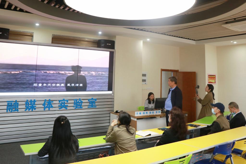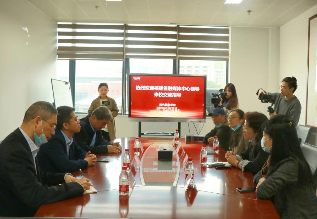 2020年11月23日,福建省广电集团融媒体资讯中心总编室谢予川主任、武永征副主任、蓝步华副科长、业务骨干林力来到必赢bwin官方网站,在现代管理学院常务副经理张其春教授等人的带领下,参观必赢bwin官方网站的融媒体教学实验室,商议了合作事宜。
