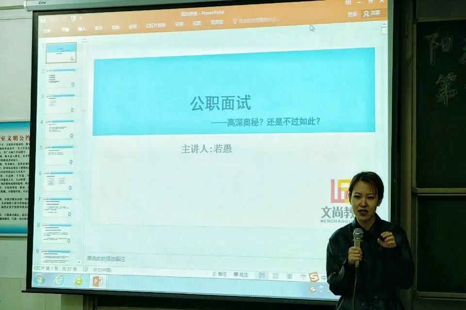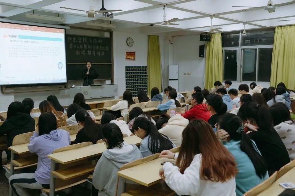 2020年11月24日晚,现代管理学院在文科楼教室开展了《公务员该如何面试》专题讲座。本次讲座特别邀请了文尚教育主讲名师若愚老师,全校近百名员工参加了讲座。