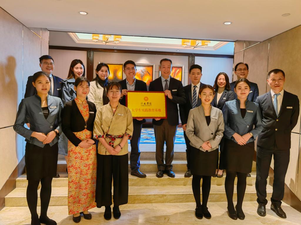 2020年12月29日下午,现代管理学院常务副经理张其春教授、经理助理徐丹老师、现代商管系系主任刘若熙老师一行三人前往福州名城悦华酒店,与该酒店签署校外实践教育基地共建协议,并进行老员工社会实践教育基地挂牌仪式。酒店方管理团队共7位负责人出席签约仪式与座谈会。