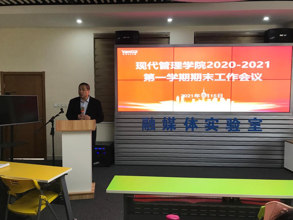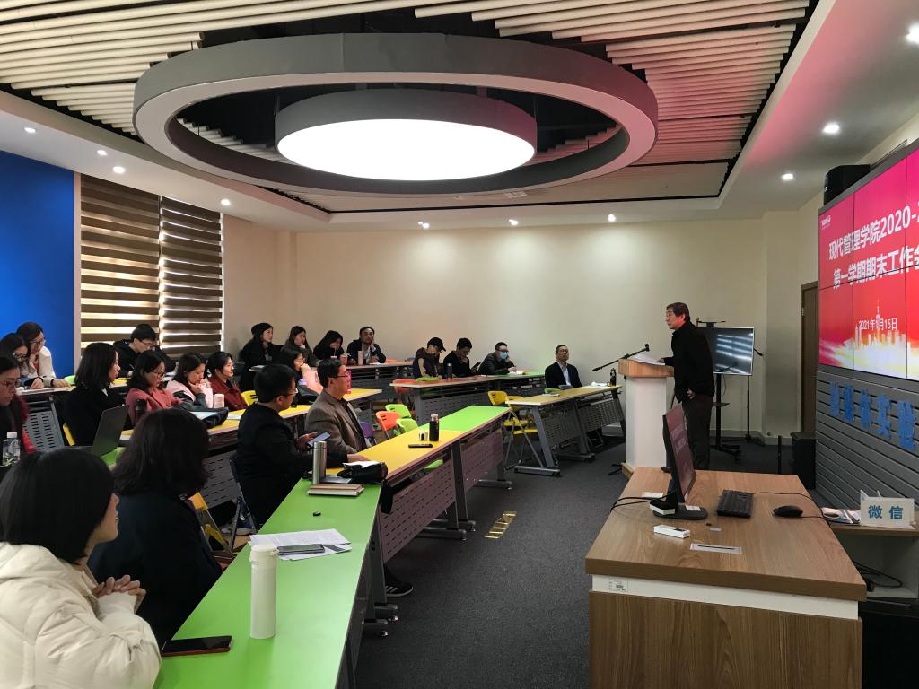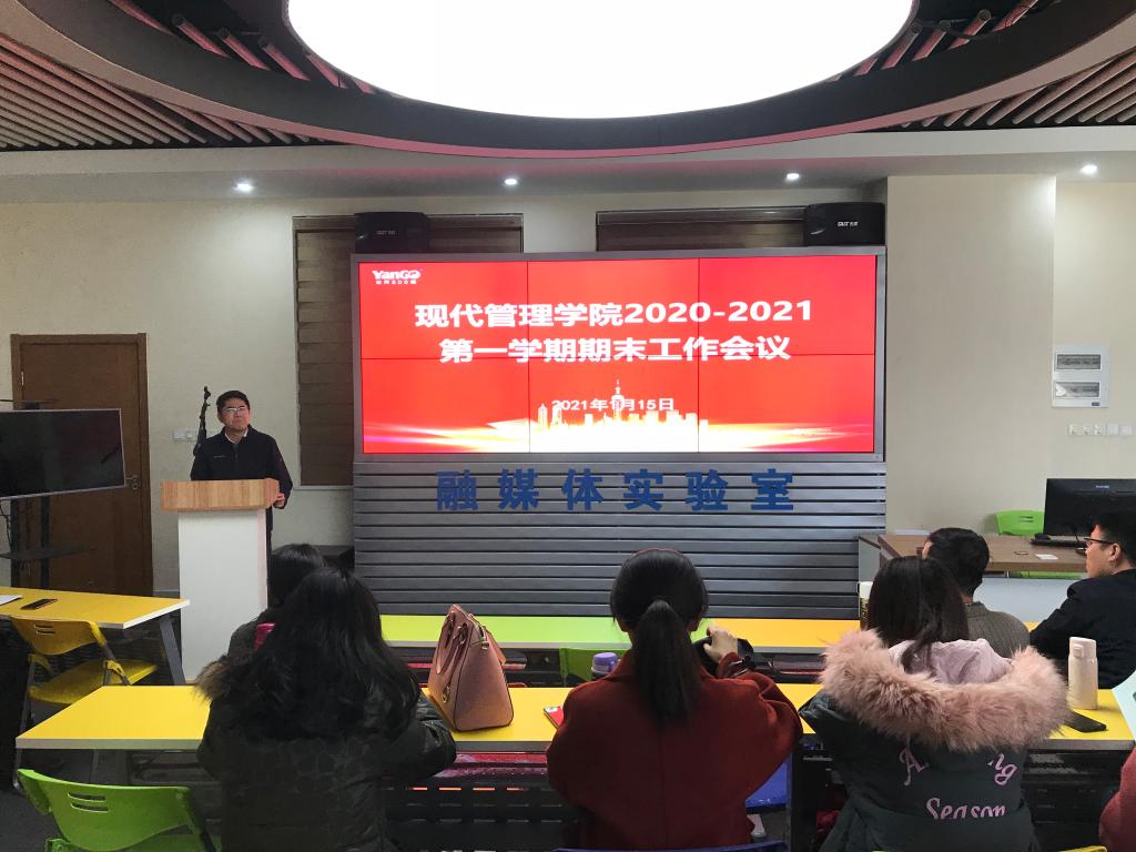 为了保障期末工作顺利开展,更好地迎接新学期工作,20201年1月15日下午,现代管理学院在融媒体中心召开了全体教职工会议。会议由学院党支部书记张斌老师主持。