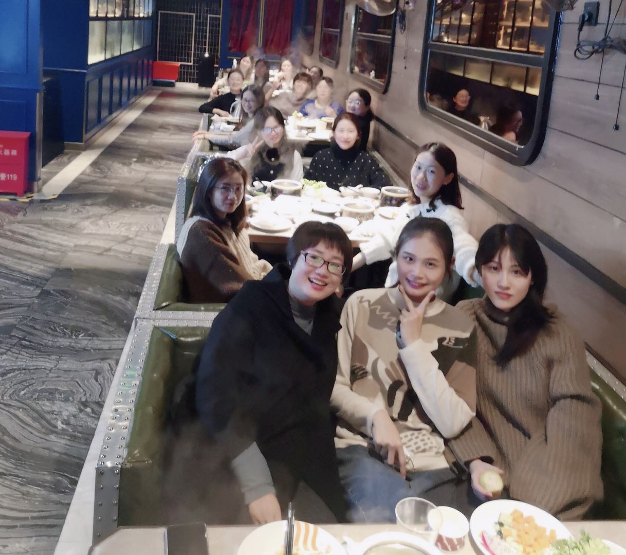 在结束上午的工作后,学院女教职工在党总支张斌书记的带领下前往聚餐地点,大家都表示吃得非常开心满意。