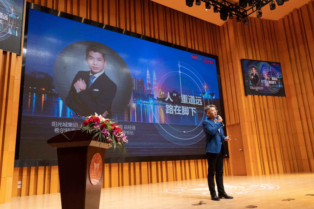 接下来的校企合作分享环节,阳光城集团(上海)酒店管理公司总经理兼希尔顿酒店集团中国区业主协会秘书长李欣伟先生做了《“人”重道远 路在脚下》主题讲话。从中国住宿业总体发展规模、酒店业人才需求、 新生代从业意愿、酒店人的学习与发展、阳光城酒店及度假村几个方面,指出酒店管理专业是一门结合应知应会的应用型管理科学,强调校企之间需要真真切切地建立无缝衔接的长效合作机制,才能使未来的同学们见到行业的光明,并对同学们提出了志存高远、脚踏实地的期望。最后李总还与现场同学进行了互动,解答了员工在AI服务模式、民宿发展等方面的疑问。