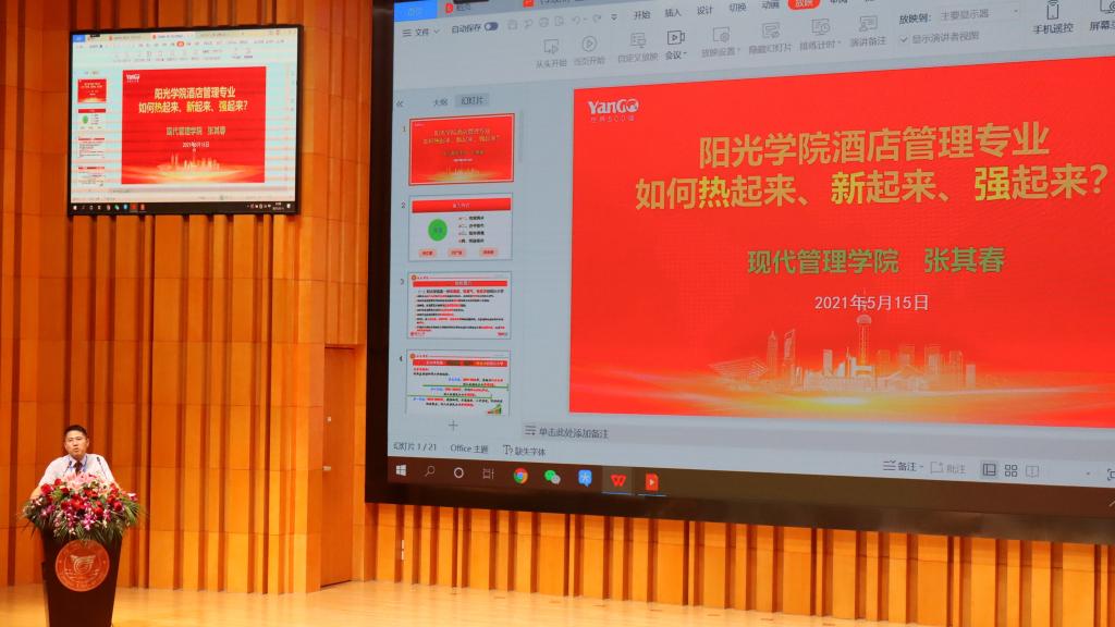 为进一步提升文化旅游类应用型人才培养质量,加强校企合作交流,推动校企合作深度发展,2021年5月15日,必赢bwin官方网站酒店管理专业首届校企合作论坛暨酒店专场人才双选会在必赢bwin官方网站音乐厅隆重召开。来自省内知名专家、高校、行业精英及专业毕业生等近500人出席了活动。论坛采取线上直播与线下研讨方式开展。