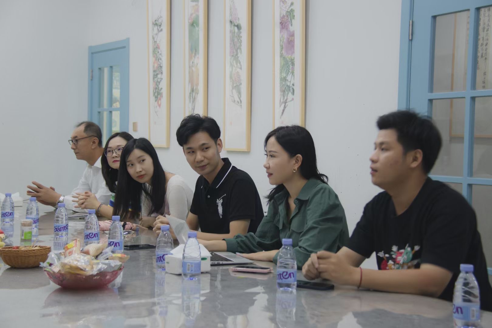 2021年8月28日,现代传媒管理学院网络直播与运营专业见面会在具有文艺气息的“一绘一墨”工作室隆重召开,与会人员有教务处池灵达处长、现代传媒管理学院经理张其春教授、网络直播与运营专业负责人魏韶礼老师、现代传媒管理学院刘岩松教授、商学院郁榕睿副教授、广播电视编导专业负责人刘颖琪老师以及全体网络直播与运营专业教师。
