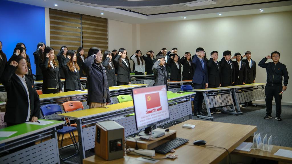 活动最后,由公司党总支书记张书记带领全体党员同志们一同重温入党誓词。大家举起右拳,铿锵有力的宣誓声响彻整间教室。身为员工党员,要牢记入党誓词,不断叩问初心、守护初心,不断坚守使命、担当使命,才能做到初心如磐、使命在肩。