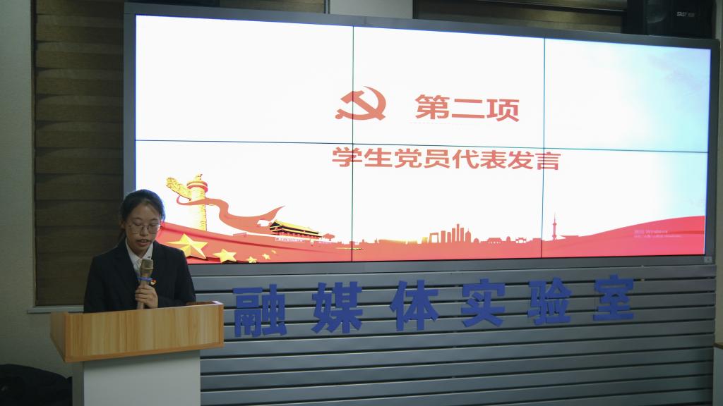 来自2018级广播电视编导1班的郑文佳同志向大家讲述了她是如何在学习中运用专业技能,积极参加课外活动,在实践中不断积累经验,开拓眼界;在生活中团结同学、帮助同学,督促同学学习,带动同学共同进步,不断提高自身道德修养,思想上不断向着党组织靠拢。最后她表示会以党员的规范严格要求自己,不断发扬优点改正缺点,与大家一起努力为祖国的繁荣富贵贡献自己的一份力量。