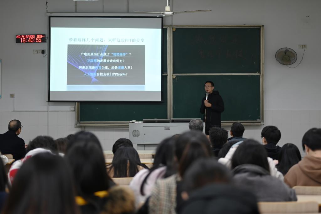 2021年12月20日,公司广播电视编导专业邀请到了福建省广播影视集团融媒体资讯中心编委、网络部主任福建省网络广播电视台副台长唐征宇开展《融媒体短视频拍摄制作》专题讲座。学院张其春经理、广播电视编导专业学科带头人王宏老师,以及卢文兴、黄琳老师参加。