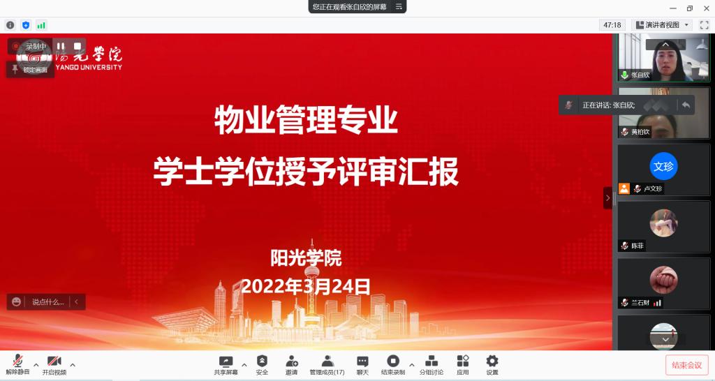专家组通过听取汇报、现场质询、调阅相关材料、直播考察专业实验室,提出了针对性的指导意见。最后专家组一致认为物业管理专业定位准确、特色鲜明,教学条件与资源完善,符合专业人才培养要求,达到福建省学士学位授权专业审核标准,一致同意物业管理专业申请学士学位授权。