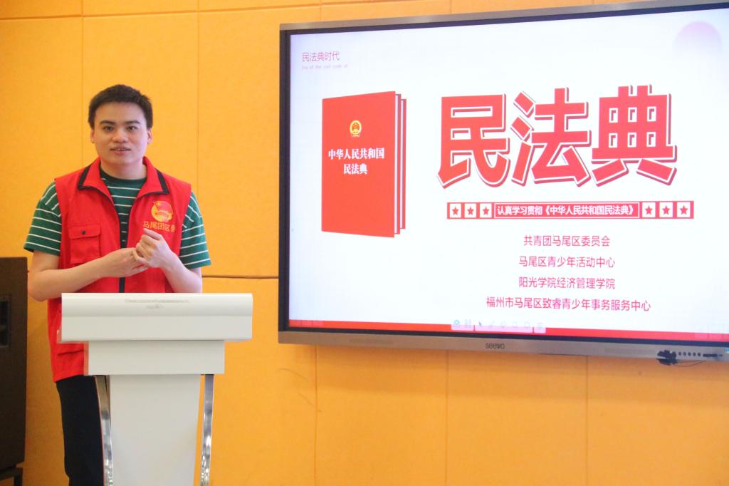 会上,陈文强老师首先对青年志愿者在此次“线上云辅导”助学帮扶活动中发挥的作用给予充分肯定并表示由衷感谢,同时勉励志愿者们在今后的工作中,一如既往地积极参加志愿服务,诠释志愿者的责任和担当。随后,陈文强老师与陈振伟老师一同为18名青年志愿者们颁发青年志愿者证书,并寄语广大青年志愿者在志愿服务中,实现大我、服务大家;更好地成就自我。最后,陈文强老师还向在座的志愿者们普及了民法典的相关知识。
