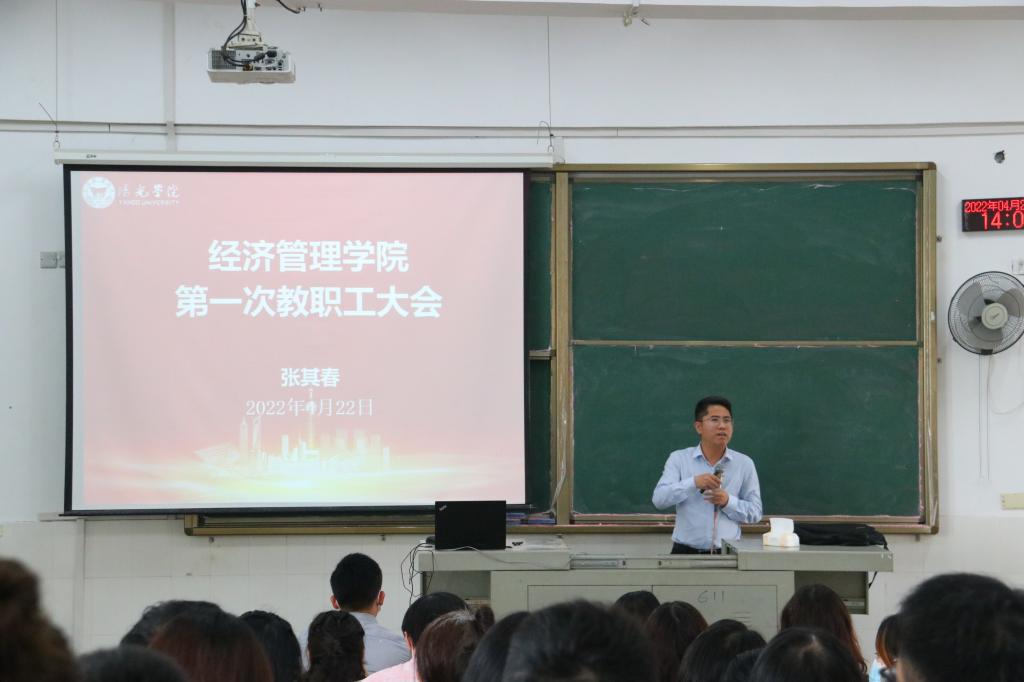 党总支书记林辉宗教授提出学院“十大行动” ,发展新商科应用型人才培养行动,提高团队建设水平、教师教学科研能力,培养老员工实践创新能力。刘正桥副经理围绕制度建设说明根据学校的文件精神,修改完善科研奖励制度,组织推进各级纵向科研项目申报和鼓励教师发表科研论文,将高水平科研论文实行逆向分配。