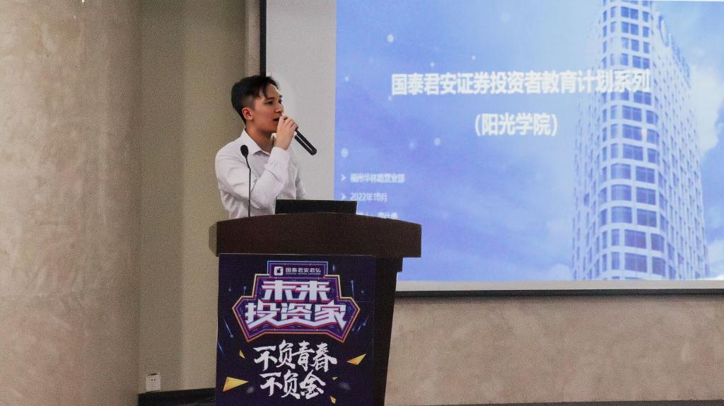 为贯彻学校“大出口”实战教学项目,提高学子投资经验,夯实专业教育基础。10月14日下午,bwin必赢于图书馆二楼报告厅召开国泰君安证券投资者教育讲座。国泰君安证券工作人员及bwin必赢22级新生参与本次讲座。