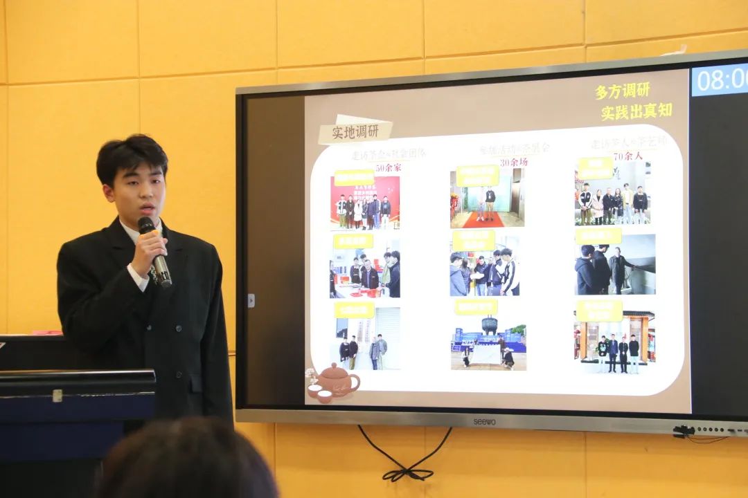 参赛团队按照抽签顺序依次进行项目展示,各团队思想创新,条理清晰,形式新颖,充分彰显了“创新、创意及创业”的赛事风采;赛场氛围浓厚,现场观众全神贯注,将“三创”精神发挥到极致。